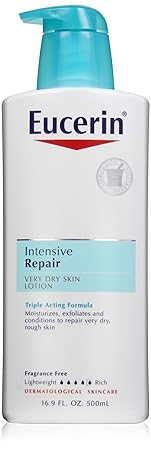 Oh, honey... My everyday lotion is now in the trash. Here to replace it is a pretty little miracle in pretty ugly packaging. Enter: Eucerin Intensive Repair Lotion.